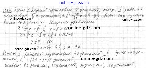 Готовые домашние задания по Математике за 6 класс Учебник Мерзляк, Полонский Алгоритм успеха 2016 - Глава 4. Рациональные числа и действия над ними (упражнения) 1194