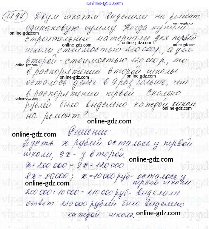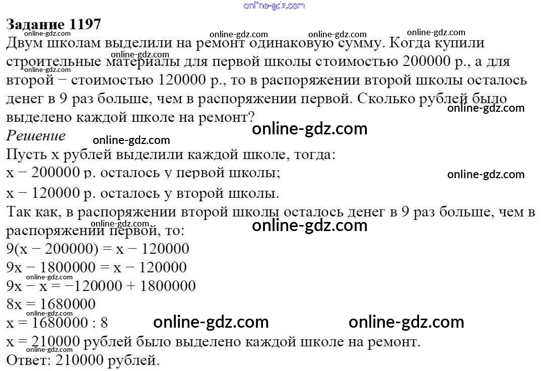 Готовые домашние задания по Математике за 6 класс Учебник Мерзляк, Полонский Алгоритм успеха 2016 - Глава 4. Рациональные числа и действия над ними (упражнения) 1197