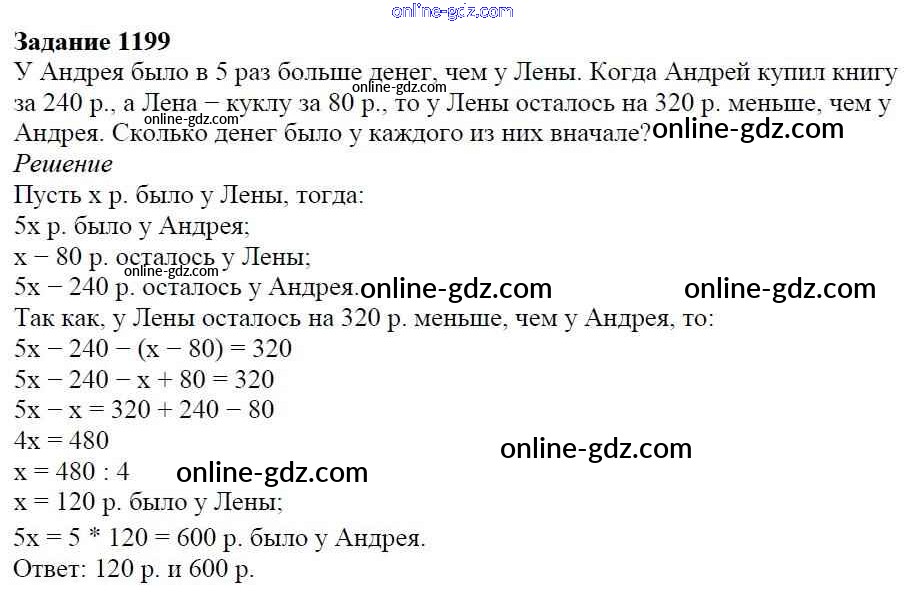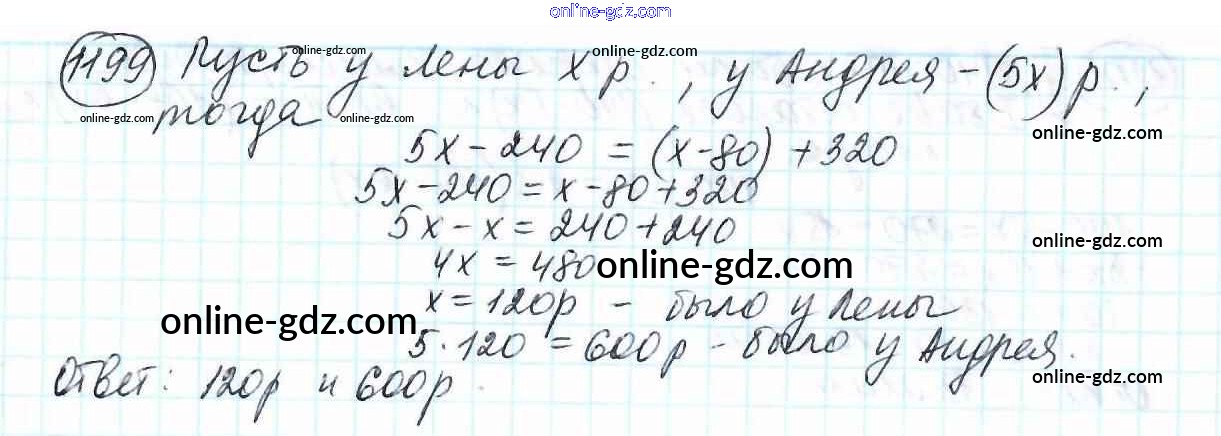 Готовые домашние задания по Математике за 6 класс Учебник Мерзляк, Полонский Алгоритм успеха 2016 - Глава 4. Рациональные числа и действия над ними (упражнения) 1199