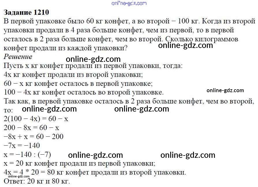 Готовые домашние задания по Математике за 6 класс Учебник Мерзляк, Полонский Алгоритм успеха 2016 - Глава 4. Рациональные числа и действия над ними (упражнения) 1210