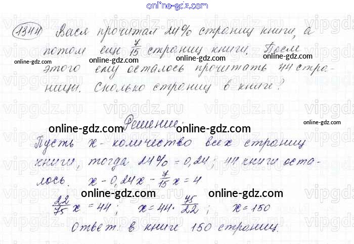 Готовые домашние задания по Математике за 6 класс Учебник Мерзляк, Полонский Алгоритм успеха 2016 - Глава 4. Рациональные числа и действия над ними (упражнения) 1344