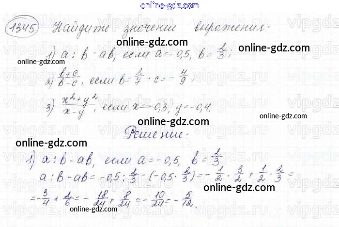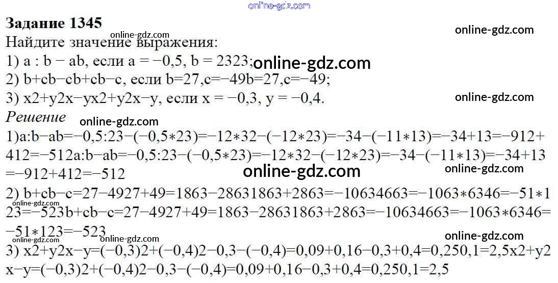 Готовые домашние задания по Математике за 6 класс Учебник Мерзляк, Полонский Алгоритм успеха 2016 - Глава 4. Рациональные числа и действия над ними (упражнения) 1345
