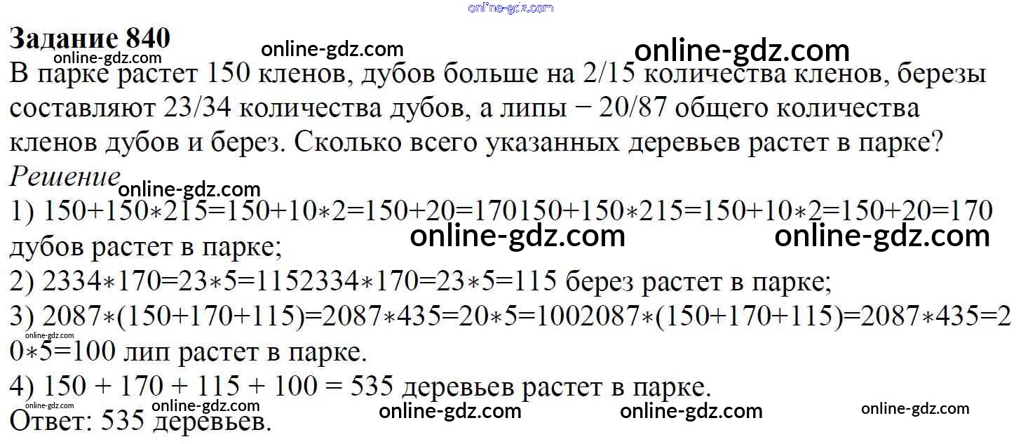 Готовые домашние задания по Математике за 6 класс Учебник Мерзляк, Полонский Алгоритм успеха 2016 - Глава 4. Рациональные числа и действия над ними (упражнения) 840