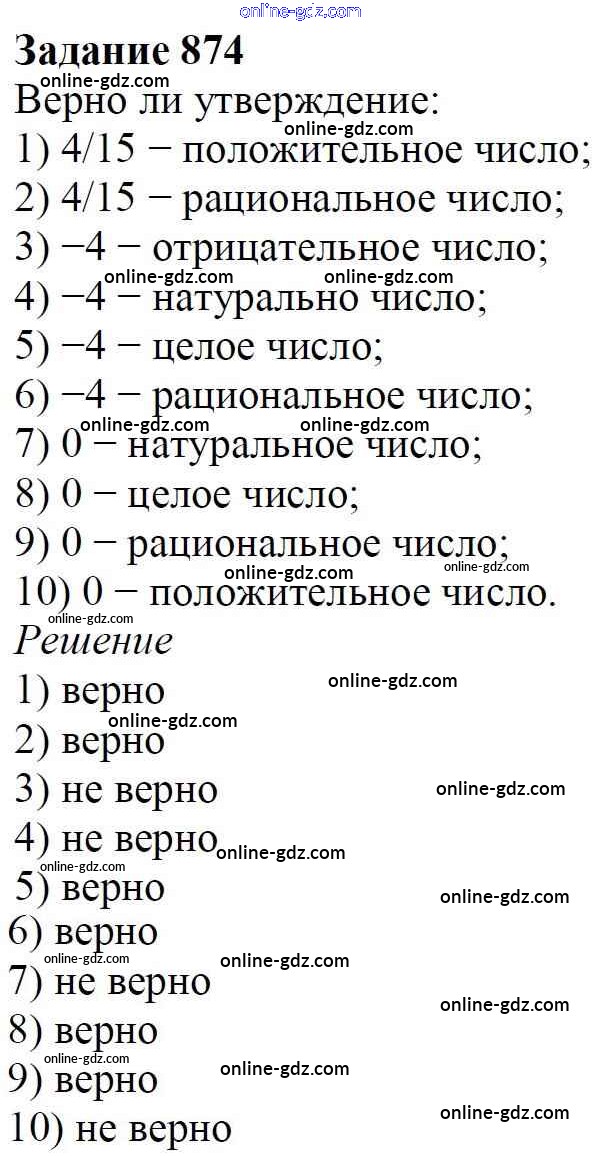 Готовые домашние задания по Математике за 6 класс Учебник Мерзляк, Полонский Алгоритм успеха 2016 - Глава 4. Рациональные числа и действия над ними (упражнения) 874