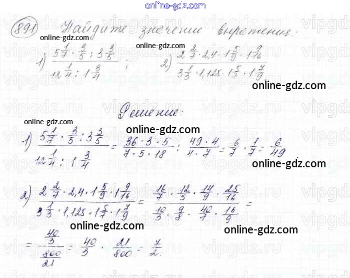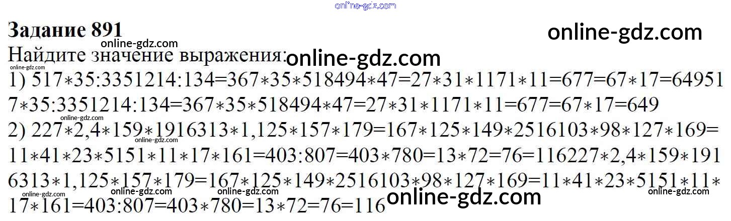 Готовые домашние задания по Математике за 6 класс Учебник Мерзляк, Полонский Алгоритм успеха 2016 - Глава 4. Рациональные числа и действия над ними (упражнения) 891