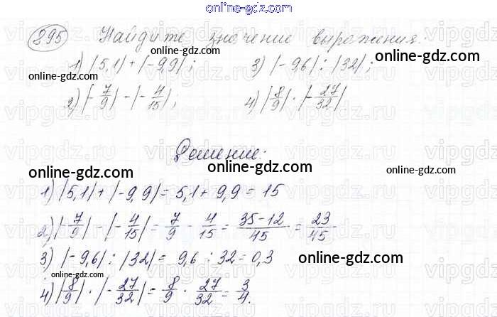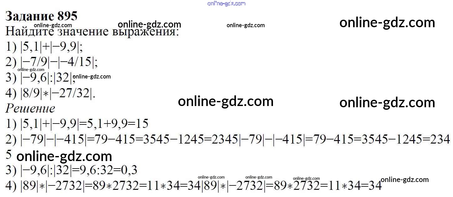 Готовые домашние задания по Математике за 6 класс Учебник Мерзляк, Полонский Алгоритм успеха 2016 - Глава 4. Рациональные числа и действия над ними (упражнения) 895