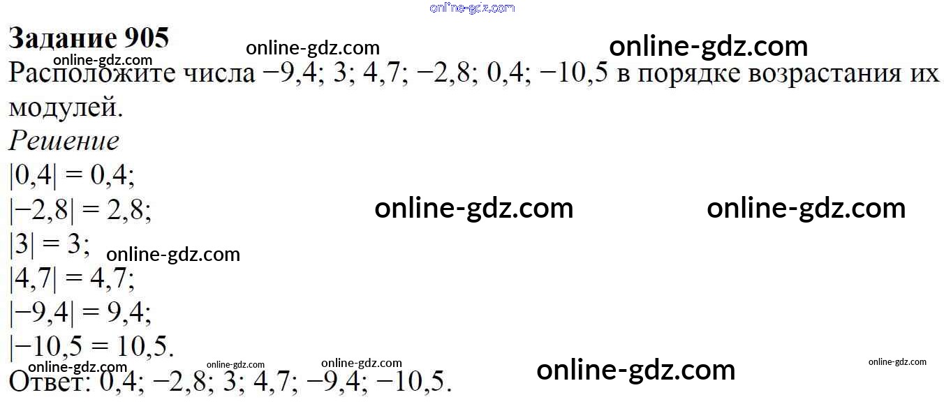 Готовые домашние задания по Математике за 6 класс Учебник Мерзляк, Полонский Алгоритм успеха 2016 - Глава 4. Рациональные числа и действия над ними (упражнения) 905