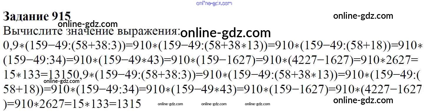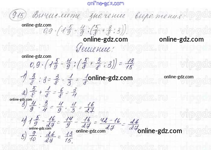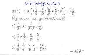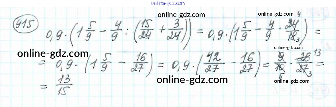Готовые домашние задания по Математике за 6 класс Учебник Мерзляк, Полонский Алгоритм успеха 2016 - Глава 4. Рациональные числа и действия над ними (упражнения) 915