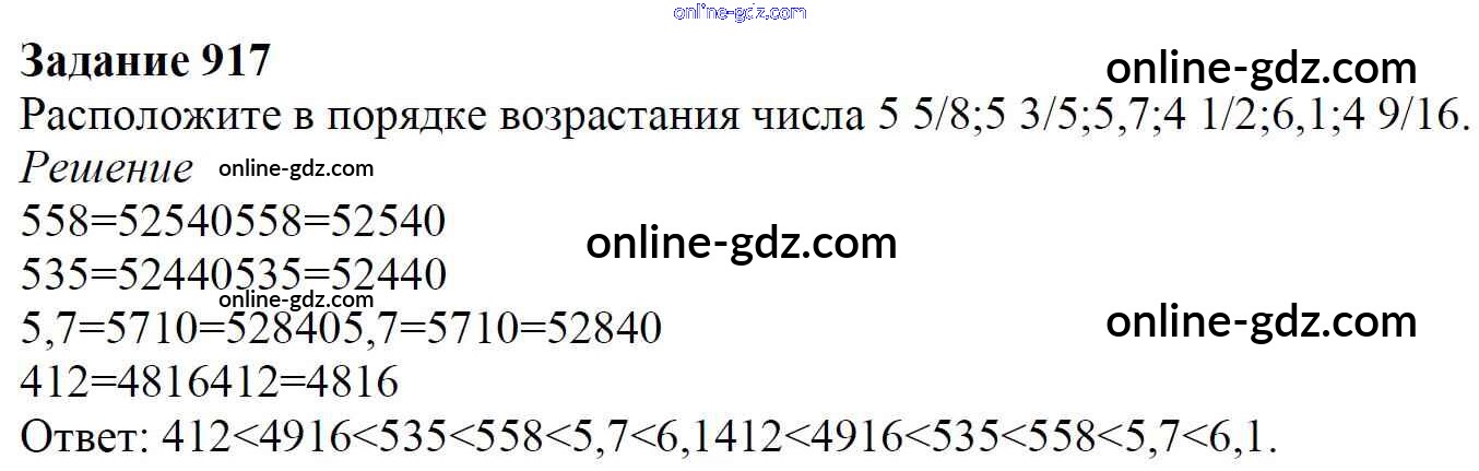 Готовые домашние задания по Математике за 6 класс Учебник Мерзляк, Полонский Алгоритм успеха 2016 - Глава 4. Рациональные числа и действия над ними (упражнения) 917