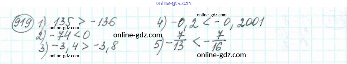 Готовые домашние задания по Математике за 6 класс Учебник Мерзляк, Полонский Алгоритм успеха 2016 - Глава 4. Рациональные числа и действия над ними (упражнения) 919