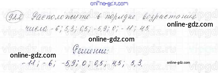 Готовые домашние задания по Математике за 6 класс Учебник Мерзляк, Полонский Алгоритм успеха 2016 - Глава 4. Рациональные числа и действия над ними (упражнения) 922