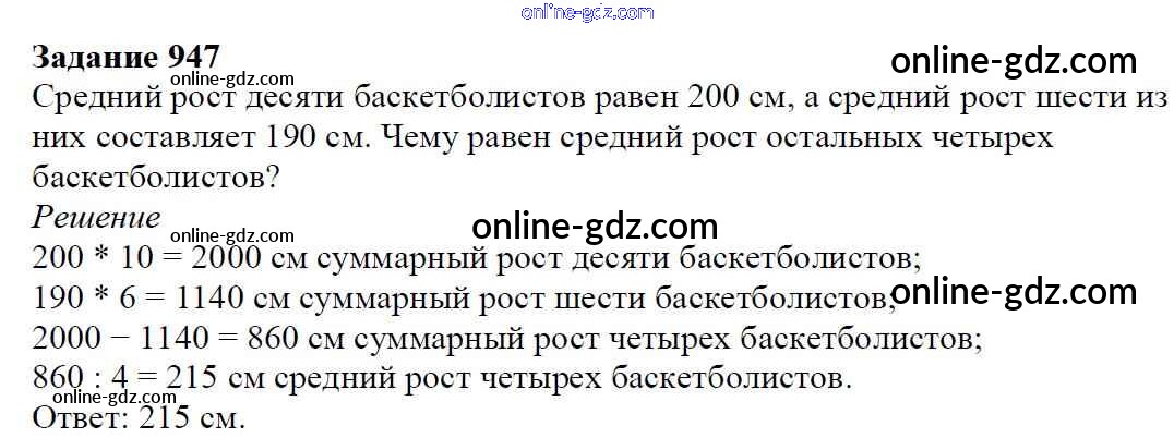 Готовые домашние задания по Математике за 6 класс Учебник Мерзляк, Полонский Алгоритм успеха 2016 - Глава 4. Рациональные числа и действия над ними (упражнения) 947