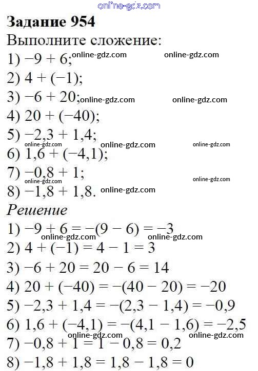 Готовые домашние задания по Математике за 6 класс Учебник Мерзляк, Полонский Алгоритм успеха 2016 - Глава 4. Рациональные числа и действия над ними (упражнения) 954