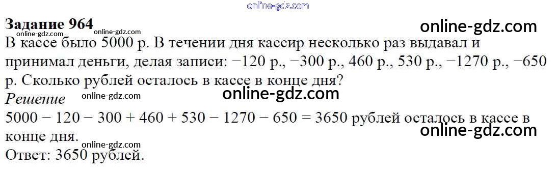 Готовые домашние задания по Математике за 6 класс Учебник Мерзляк, Полонский Алгоритм успеха 2016 - Глава 4. Рациональные числа и действия над ними (упражнения) 964
