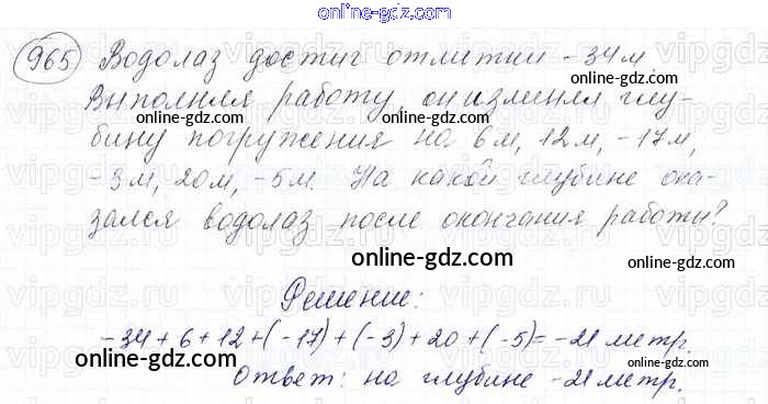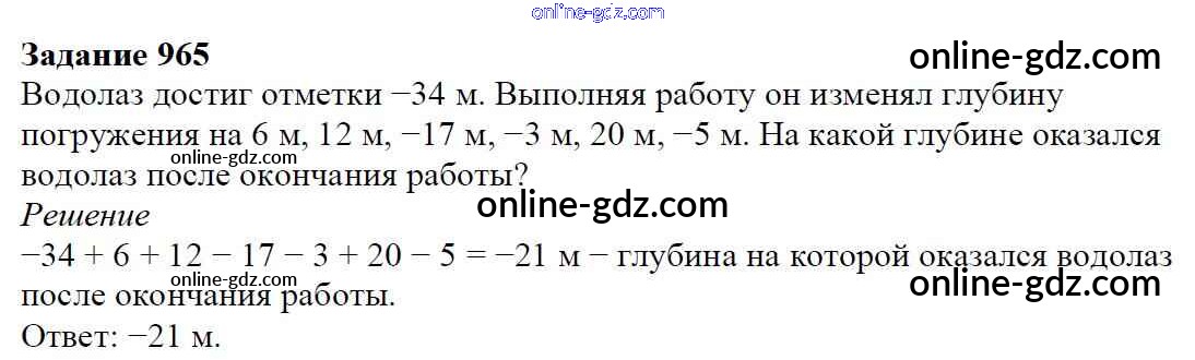 Готовые домашние задания по Математике за 6 класс Учебник Мерзляк, Полонский Алгоритм успеха 2016 - Глава 4. Рациональные числа и действия над ними (упражнения) 965