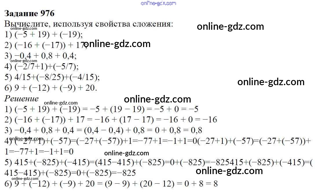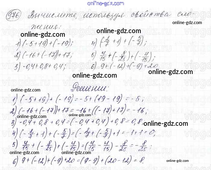 Готовые домашние задания по Математике за 6 класс Учебник Мерзляк, Полонский Алгоритм успеха 2016 - Глава 4. Рациональные числа и действия над ними (упражнения) 976