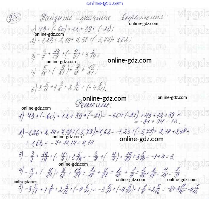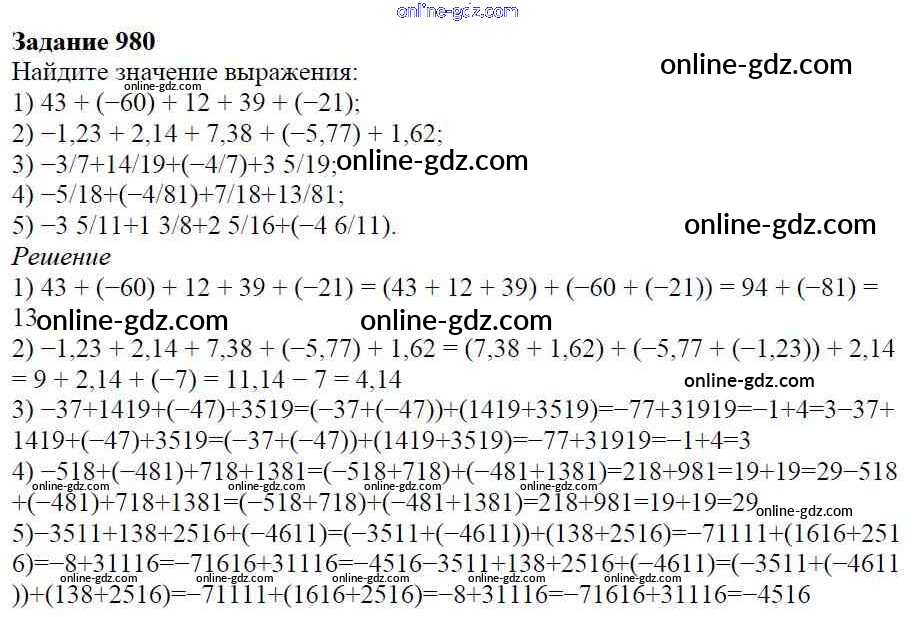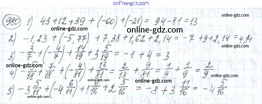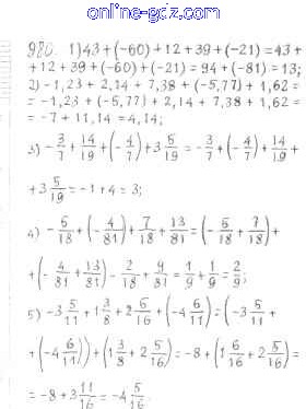 Готовые домашние задания по Математике за 6 класс Учебник Мерзляк, Полонский Алгоритм успеха 2016 - Глава 4. Рациональные числа и действия над ними (упражнения) 980