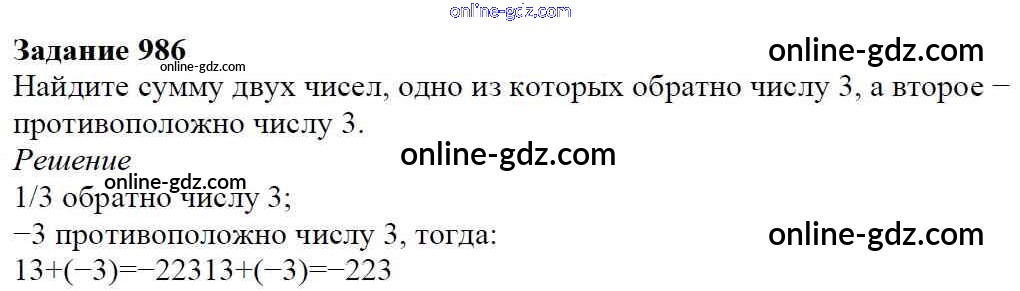 Готовые домашние задания по Математике за 6 класс Учебник Мерзляк, Полонский Алгоритм успеха 2016 - Глава 4. Рациональные числа и действия над ними (упражнения) 986