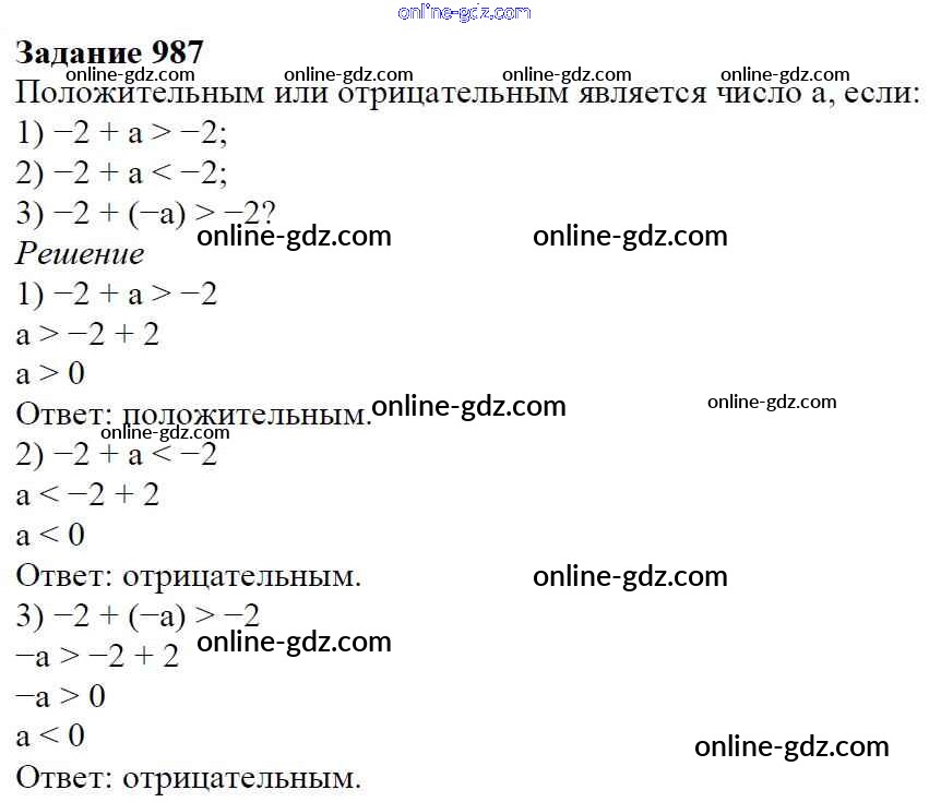 Готовые домашние задания по Математике за 6 класс Учебник Мерзляк, Полонский Алгоритм успеха 2016 - Глава 4. Рациональные числа и действия над ними (упражнения) 987