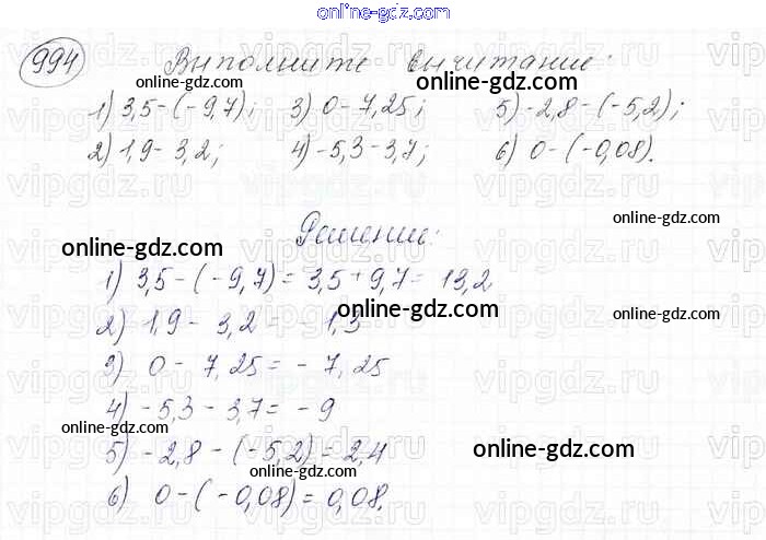 Готовые домашние задания по Математике за 6 класс Учебник Мерзляк, Полонский Алгоритм успеха 2016 - Глава 4. Рациональные числа и действия над ними (упражнения) 994