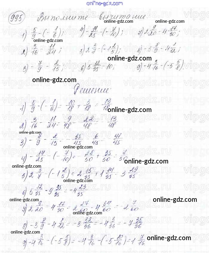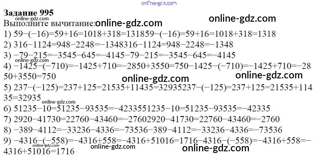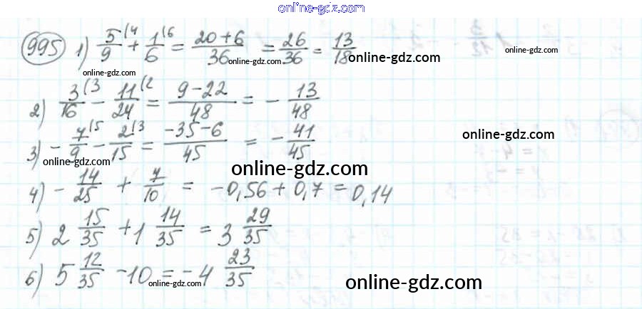 Готовые домашние задания по Математике за 6 класс Учебник Мерзляк, Полонский Алгоритм успеха 2016 - Глава 4. Рациональные числа и действия над ними (упражнения) 995