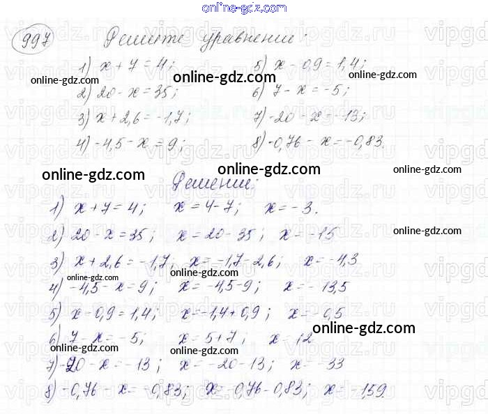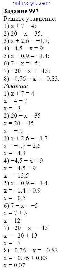 Готовые домашние задания по Математике за 6 класс Учебник Мерзляк, Полонский Алгоритм успеха 2016 - Глава 4. Рациональные числа и действия над ними (упражнения) 997