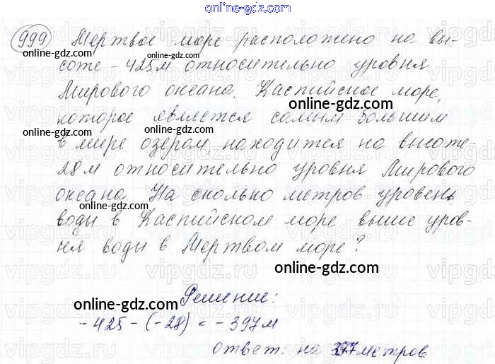 Готовые домашние задания по Математике за 6 класс Учебник Мерзляк, Полонский Алгоритм успеха 2016 - Глава 4. Рациональные числа и действия над ними (упражнения) 999