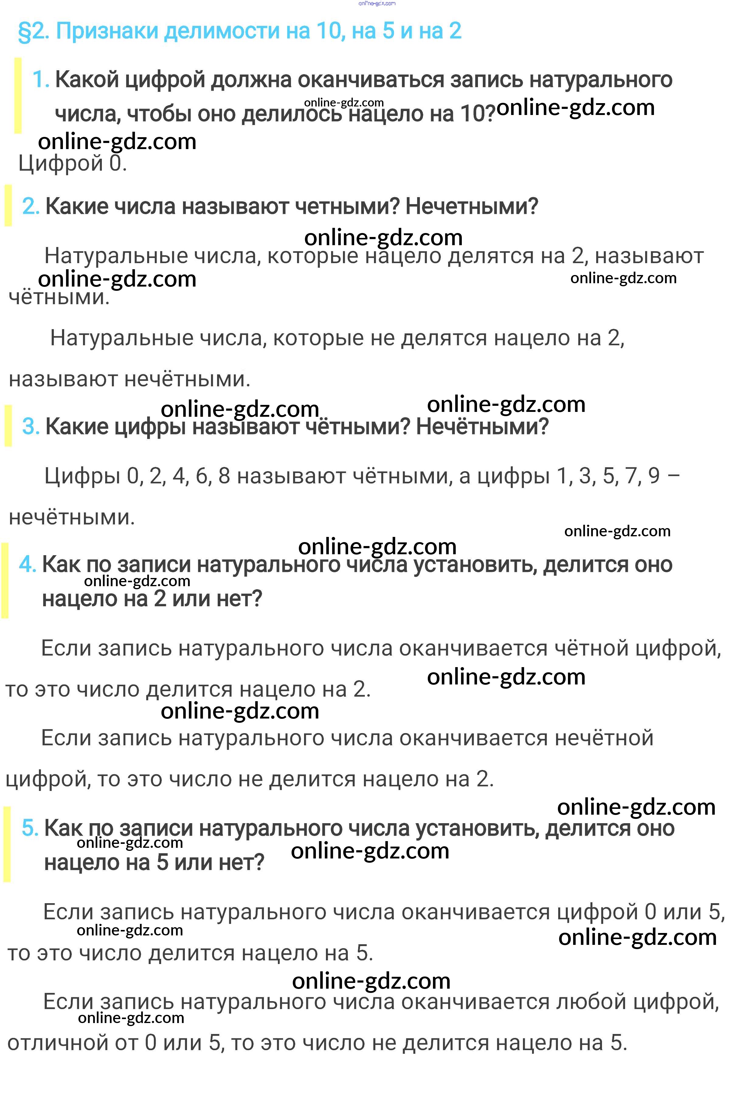 Готовые домашние задания по Математике за 6 класс Учебник Мерзляк, Полонский Алгоритм успеха 2016 - Вопросы к параграфам 2