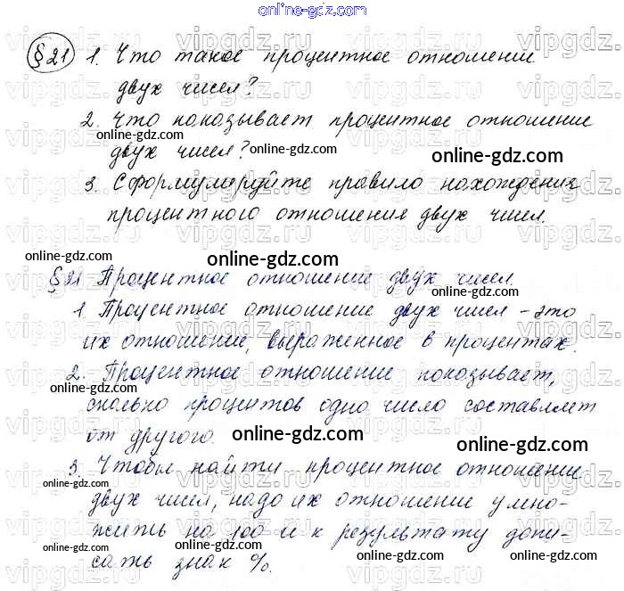 Готовые домашние задания по Математике за 6 класс Учебник Мерзляк, Полонский Алгоритм успеха 2016 - Вопросы к параграфам 21