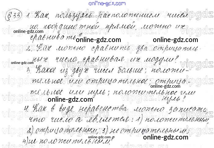Готовые домашние задания по Математике за 6 класс Учебник Мерзляк, Полонский Алгоритм успеха 2016 - Вопросы к параграфам 33