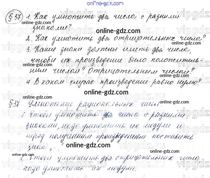 Готовые домашние задания по Математике за 6 класс Учебник Мерзляк, Полонский Алгоритм успеха 2016 - Вопросы к параграфам 37