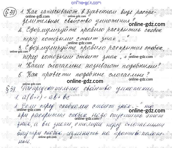 Готовые домашние задания по Математике за 6 класс Учебник Мерзляк, Полонский Алгоритм успеха 2016 - Вопросы к параграфам 39