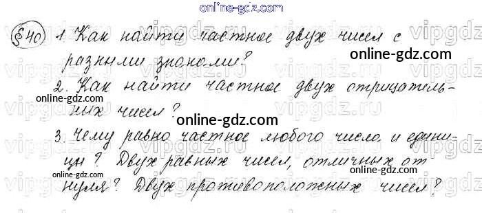 Готовые домашние задания по Математике за 6 класс Учебник Мерзляк, Полонский Алгоритм успеха 2016 - Вопросы к параграфам 40