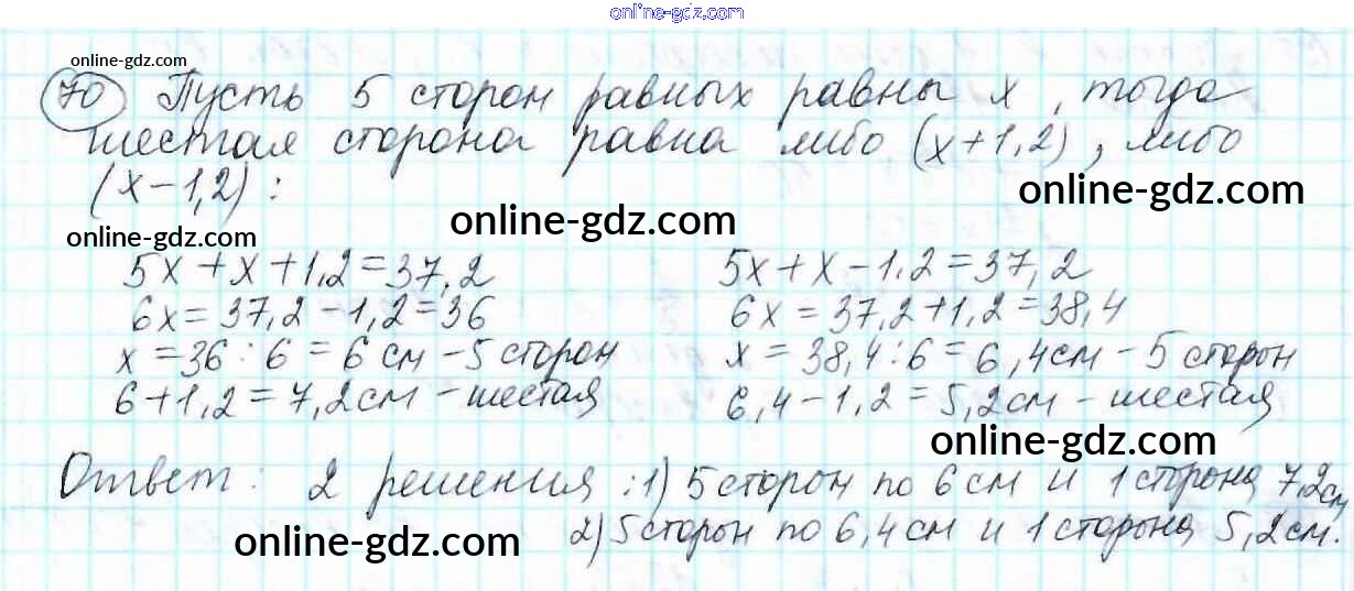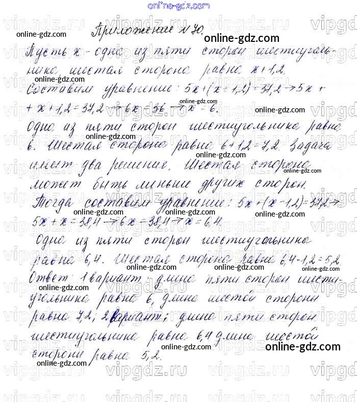 Готовые домашние задания по Математике за 6 класс Учебник Мерзляк, Полонский Алгоритм успеха 2016 - Приложения к учебнику 70