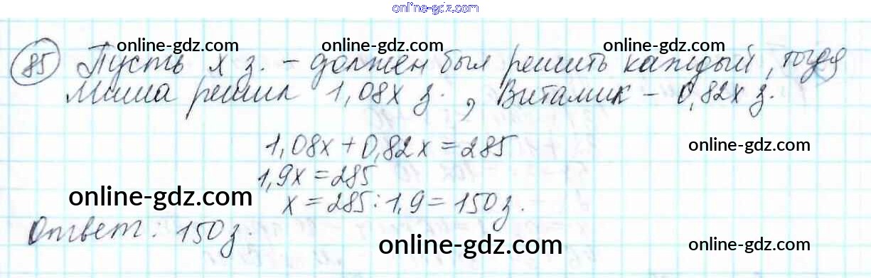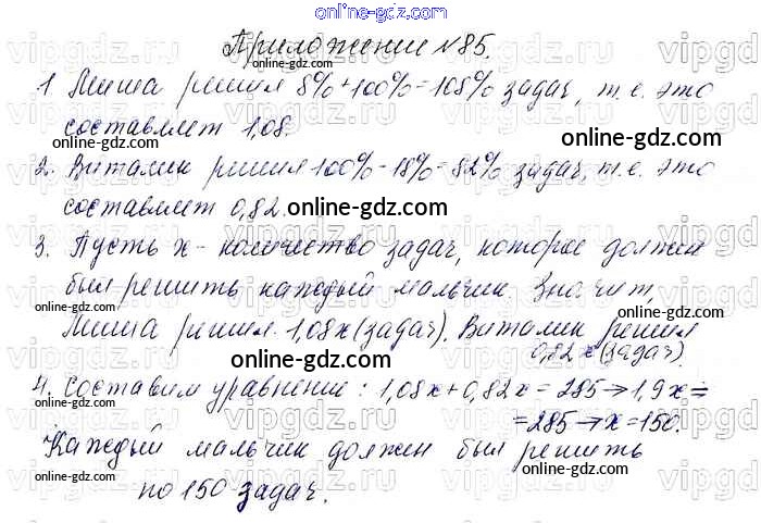 Готовые домашние задания по Математике за 6 класс Учебник Мерзляк, Полонский Алгоритм успеха 2016 - Приложения к учебнику 85