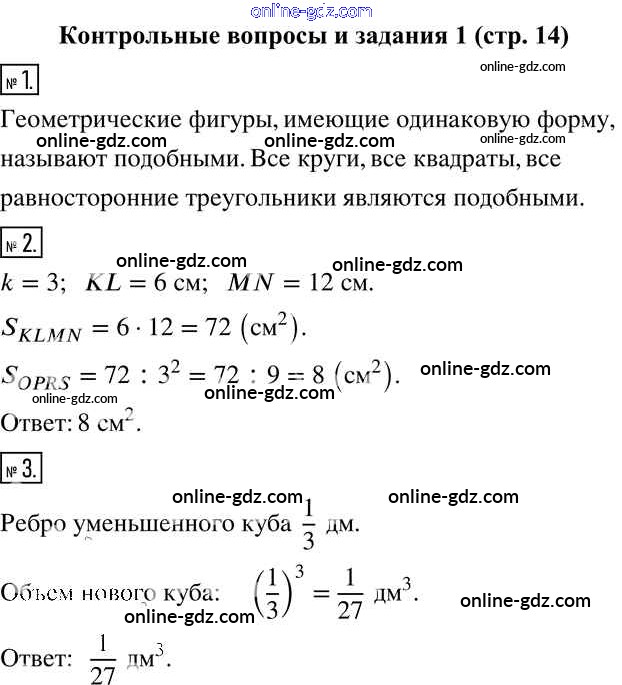 Готовые домашние задания по Математике за 6 класс Учебник Муравин, Муравина Вертикаль 2016 - §1. Подобие фигур Контрольные вопросы и задания
