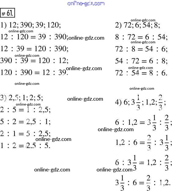 Готовые домашние задания по Математике за 6 класс Учебник Муравин, Муравина Вертикаль 2016 - §3. Отношения и пропорции 61