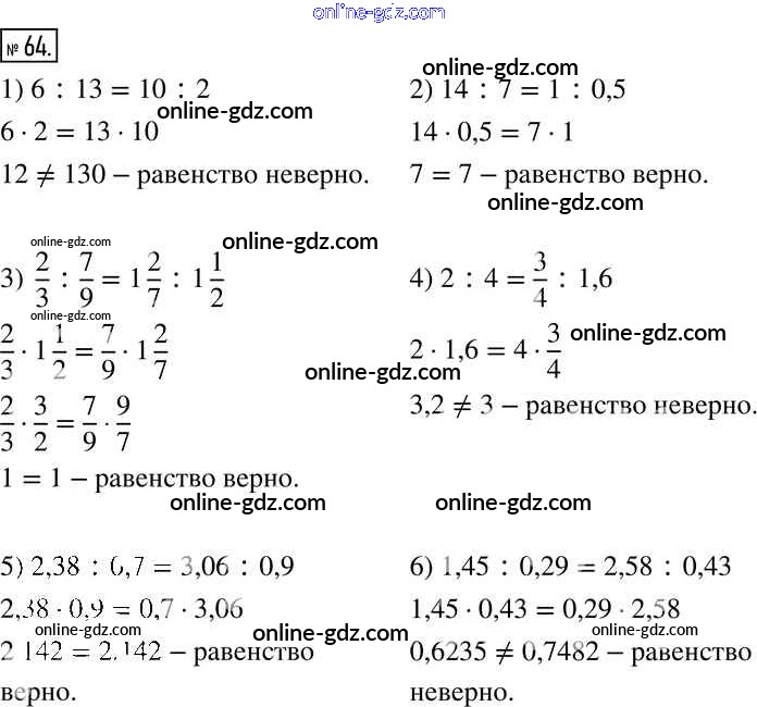 Готовые домашние задания по Математике за 6 класс Учебник Муравин, Муравина Вертикаль 2016 - §3. Отношения и пропорции 64