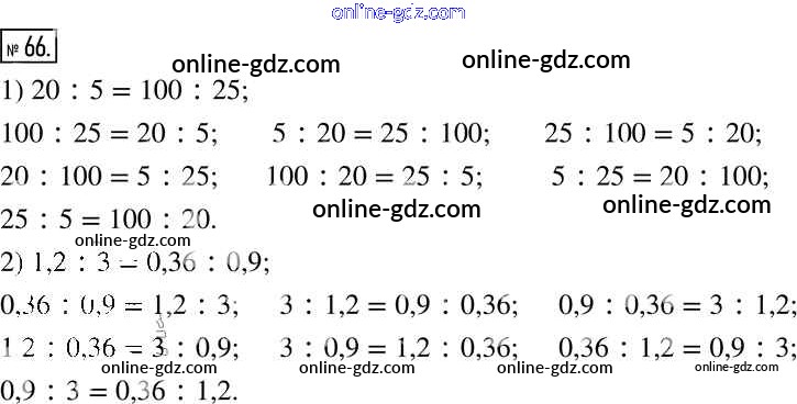 Готовые домашние задания по Математике за 6 класс Учебник Муравин, Муравина Вертикаль 2016 - §3. Отношения и пропорции 66