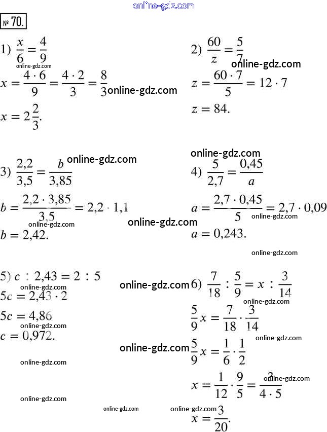 Готовые домашние задания по Математике за 6 класс Учебник Муравин, Муравина Вертикаль 2016 - §3. Отношения и пропорции 70