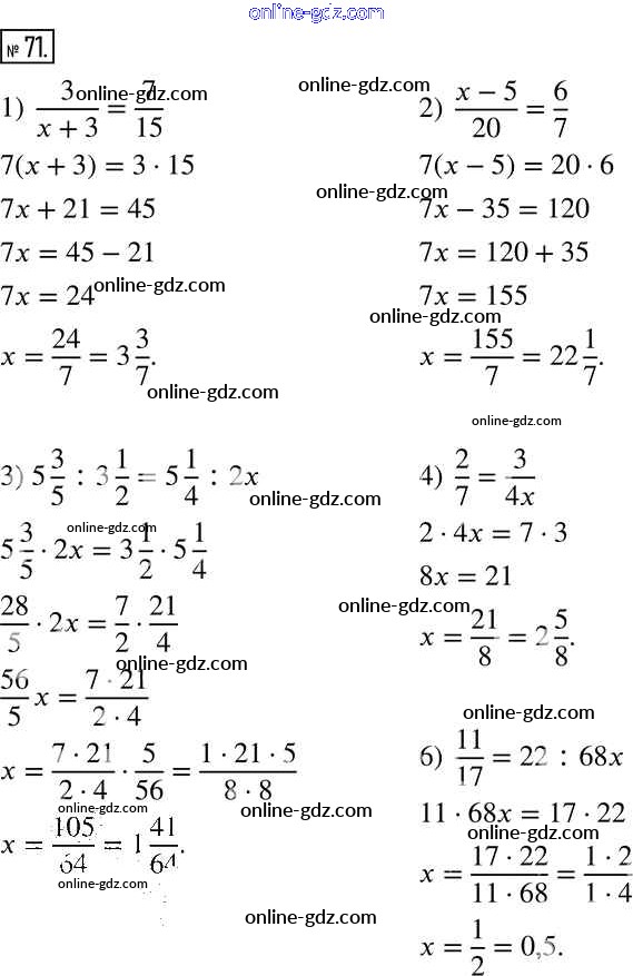 Готовые домашние задания по Математике за 6 класс Учебник Муравин, Муравина Вертикаль 2016 - §3. Отношения и пропорции 71