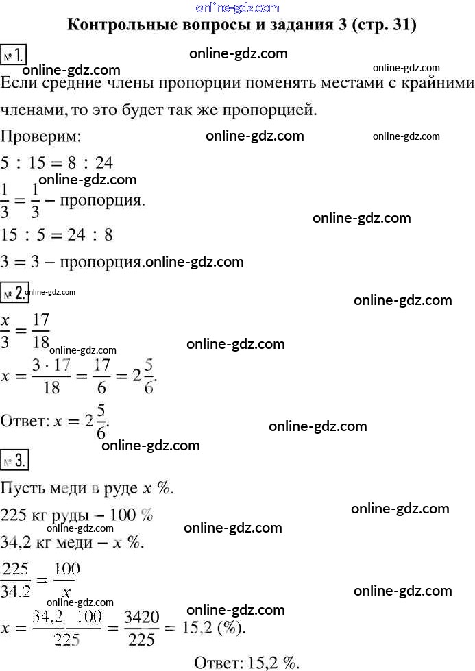 Готовые домашние задания по Математике за 6 класс Учебник Муравин, Муравина Вертикаль 2016 - §3. Отношения и пропорции Контрольные вопросы и задания