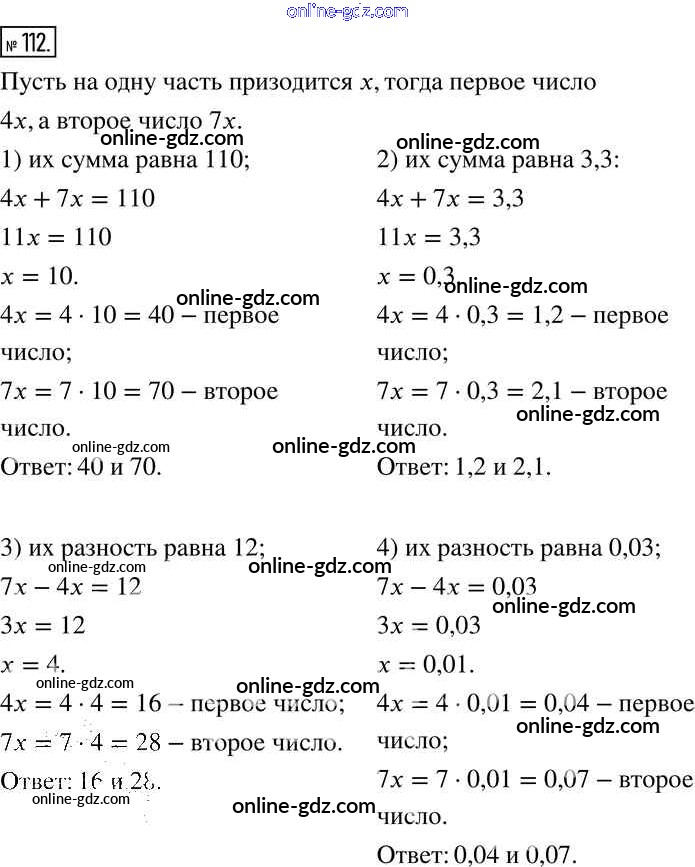 Готовые домашние задания по Математике за 6 класс Учебник Муравин, Муравина Вертикаль 2016 - §5. Деление в данном отношении 112
