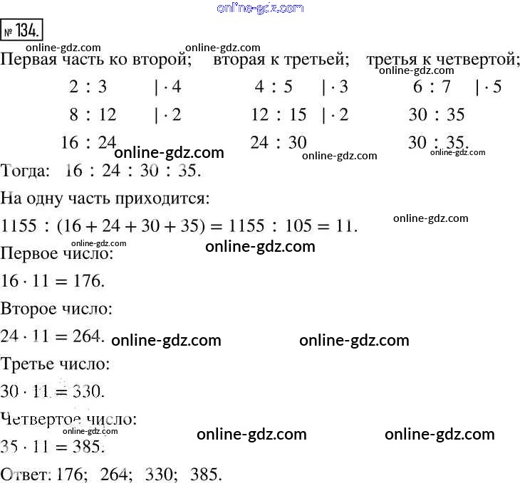 Готовые домашние задания по Математике за 6 класс Учебник Муравин, Муравина Вертикаль 2016 - §5. Деление в данном отношении 134
