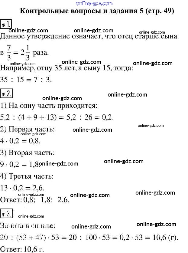 Готовые домашние задания по Математике за 6 класс Учебник Муравин, Муравина Вертикаль 2016 - §5. Деление в данном отношении Контрольные вопросы и задания