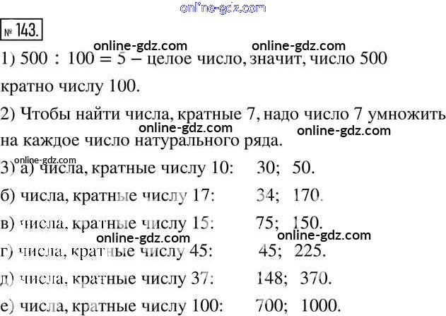Готовые домашние задания по Математике за 6 класс Учебник Муравин, Муравина Вертикаль 2016 - §6. Делители и кратные 143