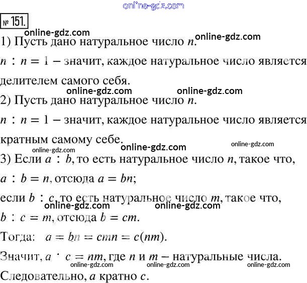 Готовые домашние задания по Математике за 6 класс Учебник Муравин, Муравина Вертикаль 2016 - §6. Делители и кратные 151