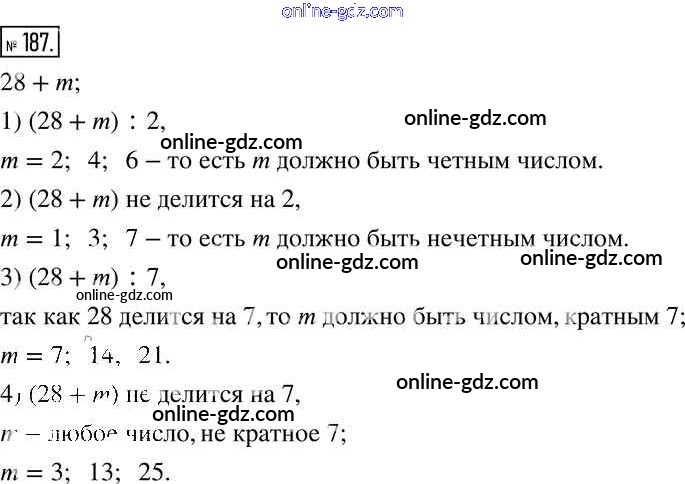 Готовые домашние задания по Математике за 6 класс Учебник Муравин, Муравина Вертикаль 2016 - §7. Свойства делимости произведения, суммы и разности чисел 187