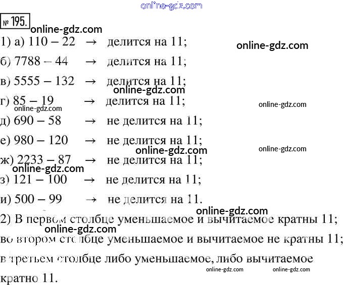 Готовые домашние задания по Математике за 6 класс Учебник Муравин, Муравина Вертикаль 2016 - §7. Свойства делимости произведения, суммы и разности чисел 195