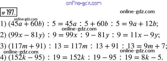 Готовые домашние задания по Математике за 6 класс Учебник Муравин, Муравина Вертикаль 2016 - §7. Свойства делимости произведения, суммы и разности чисел 197